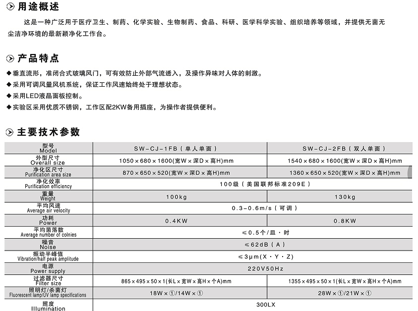 垂直送风(标准型)净化工作台